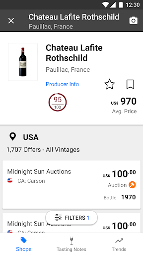 Wine-Searcher Pro hiện có sẵn dưới dạng mua hàng trong ứng dụng! Đăng ký Pro để nhận: