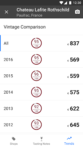 Tìm kiếm để so sánh vintages? Hoặc tìm kiếm các loại rượu khác từ cùng một Nhà sản xuất? Trong bản phát hành này, chúng tôi đã tách nội dung thành 5 tab dễ đọc: Cửa hàng, Ghi chú nếm, Giới thiệu, Vintages và Lịch sử giá.